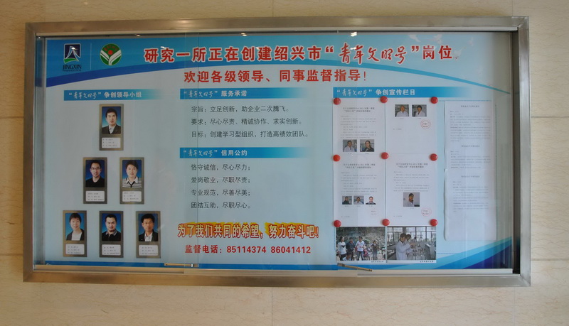 11月23日,,,,研究一所接受了绍兴市“青年文明号”检查组2011年在争创的“市级青年文明号”的验收。。。